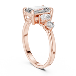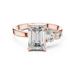 Emerald Solitaire Four Prong Diamond Setting Ring with Three Stone