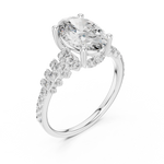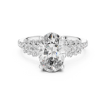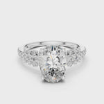 This magnificent oval-cut diamond ring captures attention with its mirror-like facets and bold presence. The minimalist band enhances the stone’s striking clarity, creating a look of understated elegance and modern sophistication.