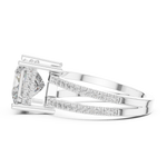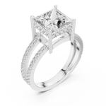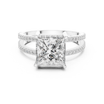 A stunning fusion of brilliance and beauty, this rose gold ring features a radiant princess-cut diamond accentuated by a pavé-set halo. The split band adds extra shimmer and balance, creating an unforgettable symbol of love, commitment, and refined elegance.