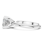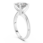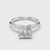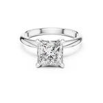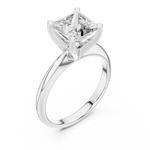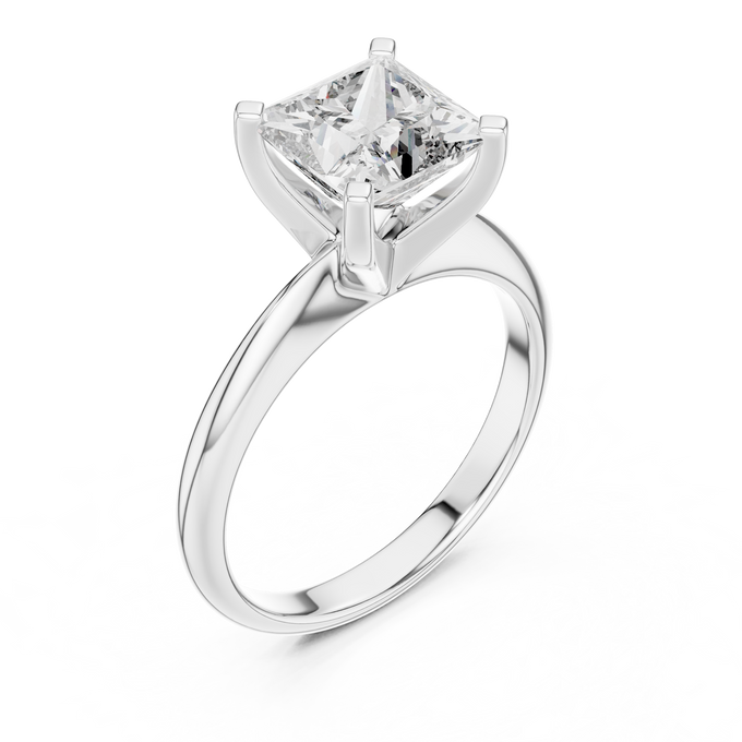 This luxurious ring highlights a princess diamond set in a refined four-prong design. The sleek band, adorned with glimmering diamonds, complements the center stone’s brilliance, embodying contemporary elegance and timeless allure.