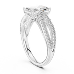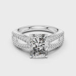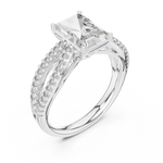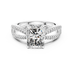 Featuring a striking radiant-cut diamond, this romantic ring radiates brilliance and emotion. The slender diamond band enhances its radiant center, creating a design that celebrates eternal love with timeless elegance.