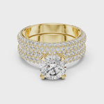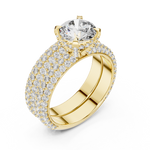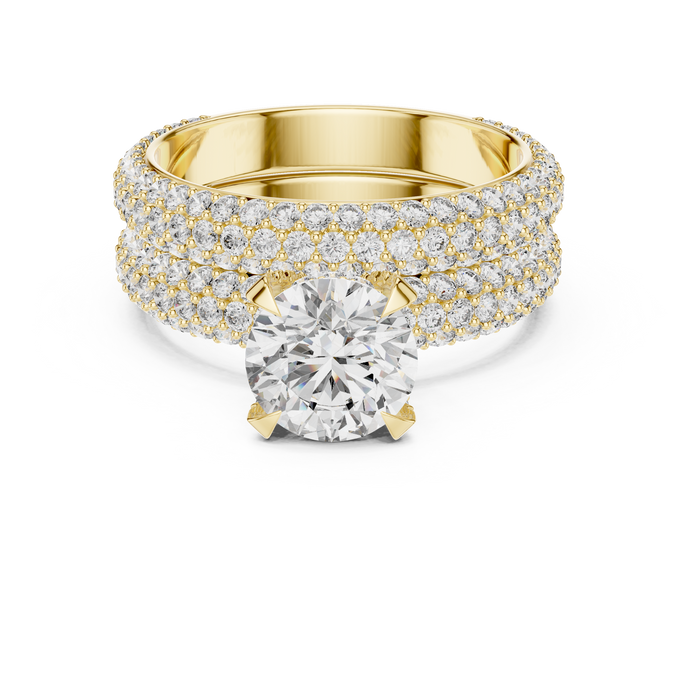 A luxurious diamond ring set adorned with dazzling round-cut diamonds. Its intricate pavé detailing enhances brilliance and sophistication, making it the perfect symbol of everlasting love and modern elegance.