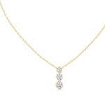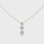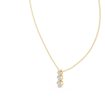 A vertical pendant with three luminous round diamonds captures both modern style and classic grace. The arrangement offers a beautiful flow of sparkle, perfect for elevating casual looks or enhancing evening wear.