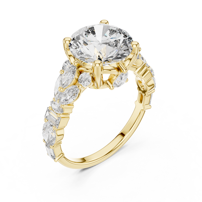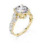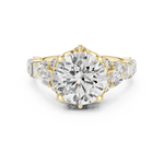 A round diamond glows at the heart of this elegant ring, embraced by a slender diamond-lined band. Its clean lines and luminous sparkle evoke a sense of refined luxury and enduring romance.