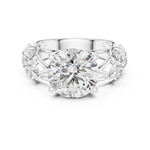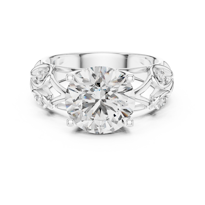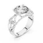 This mesmerizing white gold ring showcases a brilliant round-cut diamond set atop a delicate filigree band. The intricate openwork design adds a touch of artistry and romance, blending modern sophistication with timeless allure. Perfect for those who cherish elegance with a creative twist.