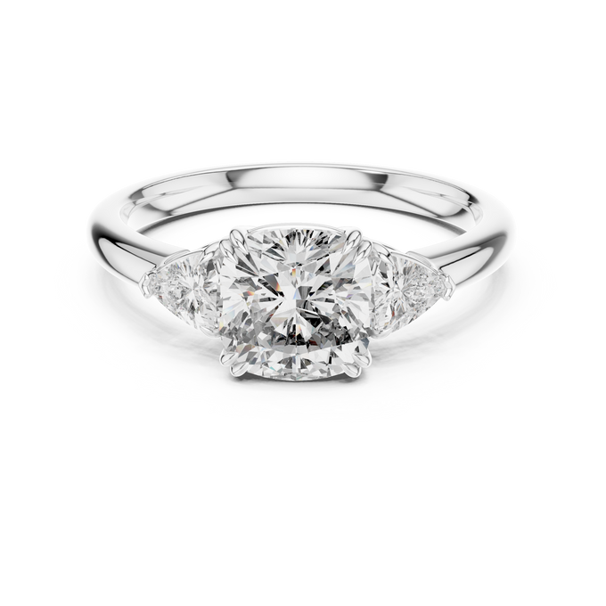 Blush Harmony Cushion Cut Three-Stone Diamond Ring