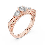 This refined ring features a stunning oval-cut diamond at the center, gracefully flanked by two pear-shaped diamonds. The combination creates a captivating balance of brilliance and sophistication, symbolizing love’s past, present, and future. A timeless masterpiece crafted for elegance, romance, and enduring beauty.