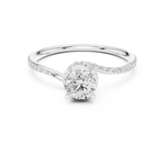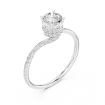 Featuring a round-cut diamond elevated by a spiral pavé design, this ring combines modern artistry with timeless brilliance. Each curve enhances the central sparkle, embodying romance and elegance in motion.