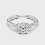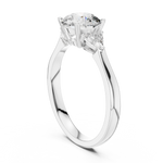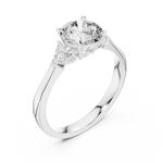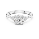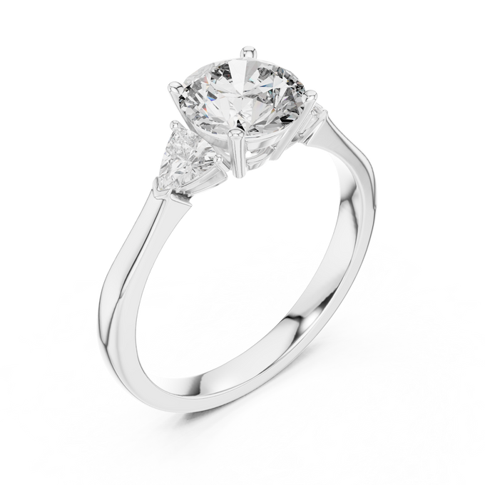 A brilliant diamond shines between two sparkling side stones, forming a perfect trio of light. This design represents infinite connection and lasting affection — a timeless expression of love.