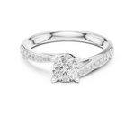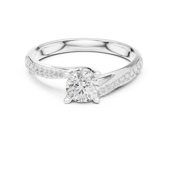 Inspired by the quiet glow of moonlight, the round-cut diamond radiates brilliance atop a diamond-studded band. Its elegant silhouette embodies purity, serenity, and timeless romance.